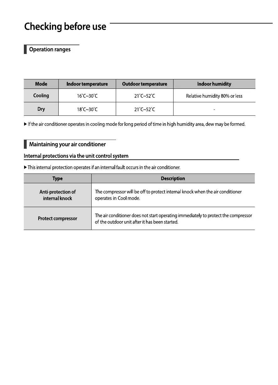 conditioner can be operated within. Refer to the table for ecient use.