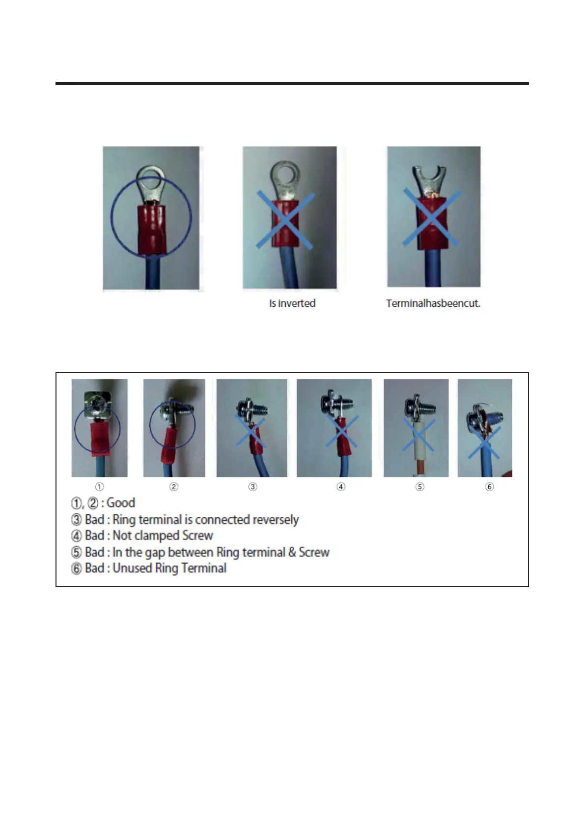 2. There shall be no empty space between Ring terminal and Screw after Clamp.