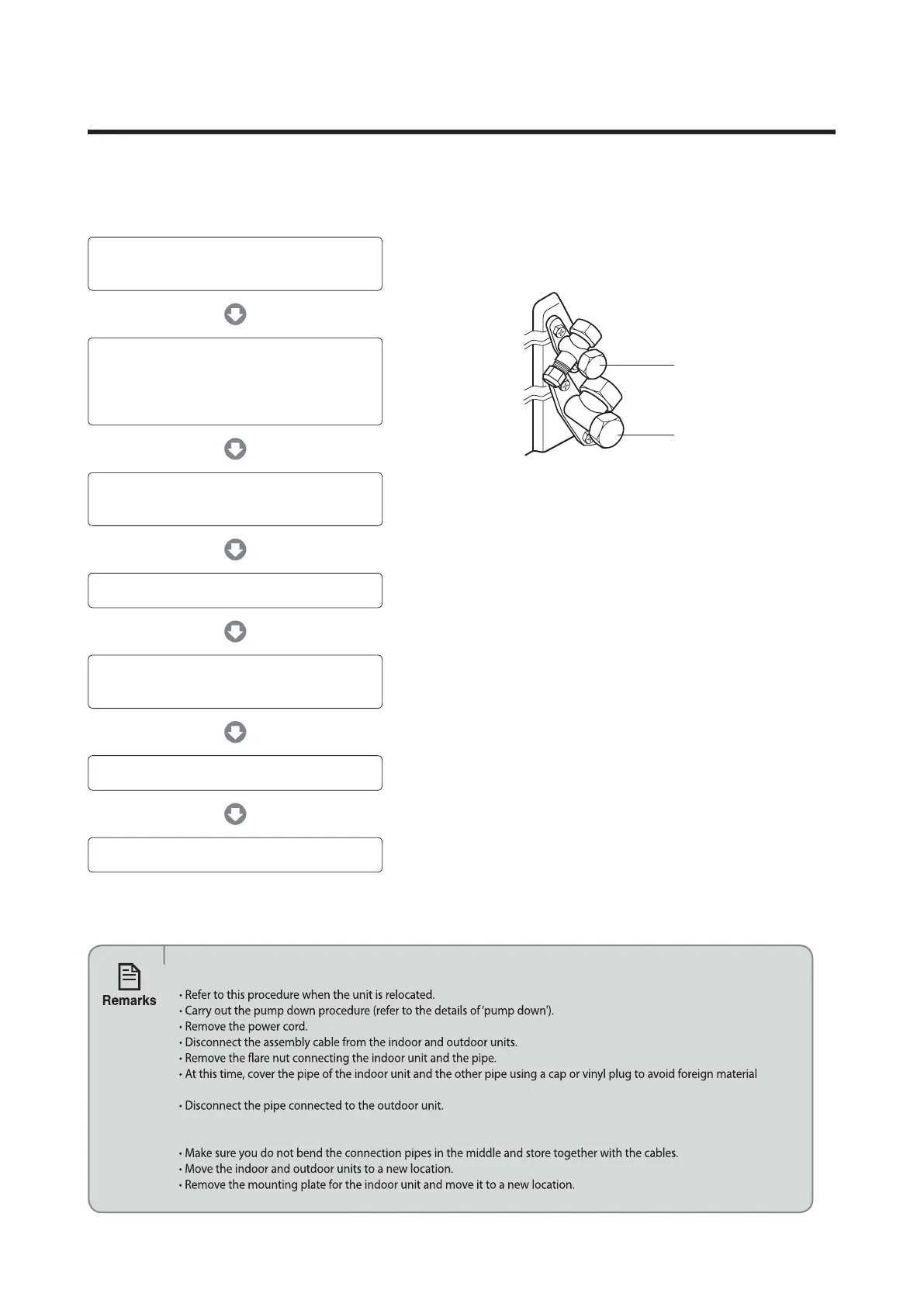 At this time, cover the valve of the outdoor unit and the other pipe using a cap or vinyl plug to avoid foreign