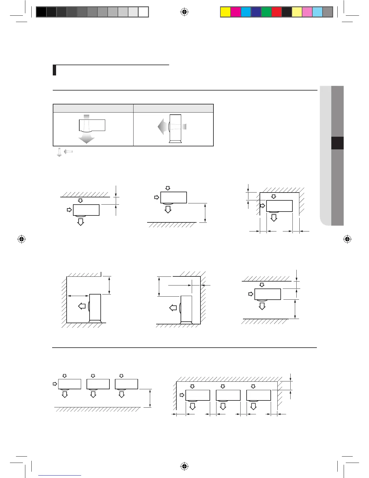 When the air outlet is towards the wall When 3 sides of the outdoor unit are blocked by the wall