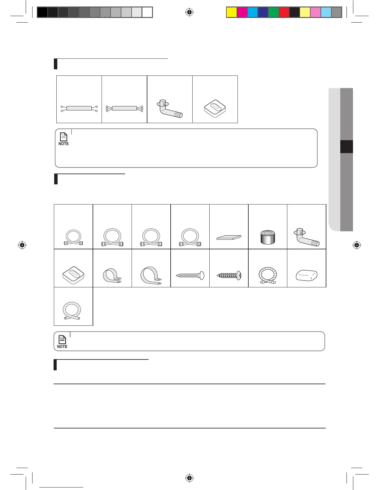 The following connection accessories are optional. If they are not supplied, you should obtain them before installing the air