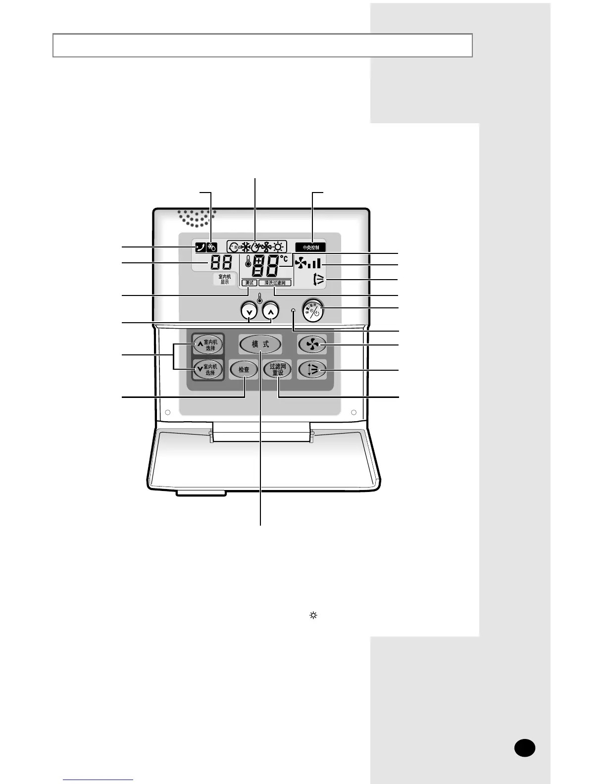 有线遥控将显示清洗过滤网指示。