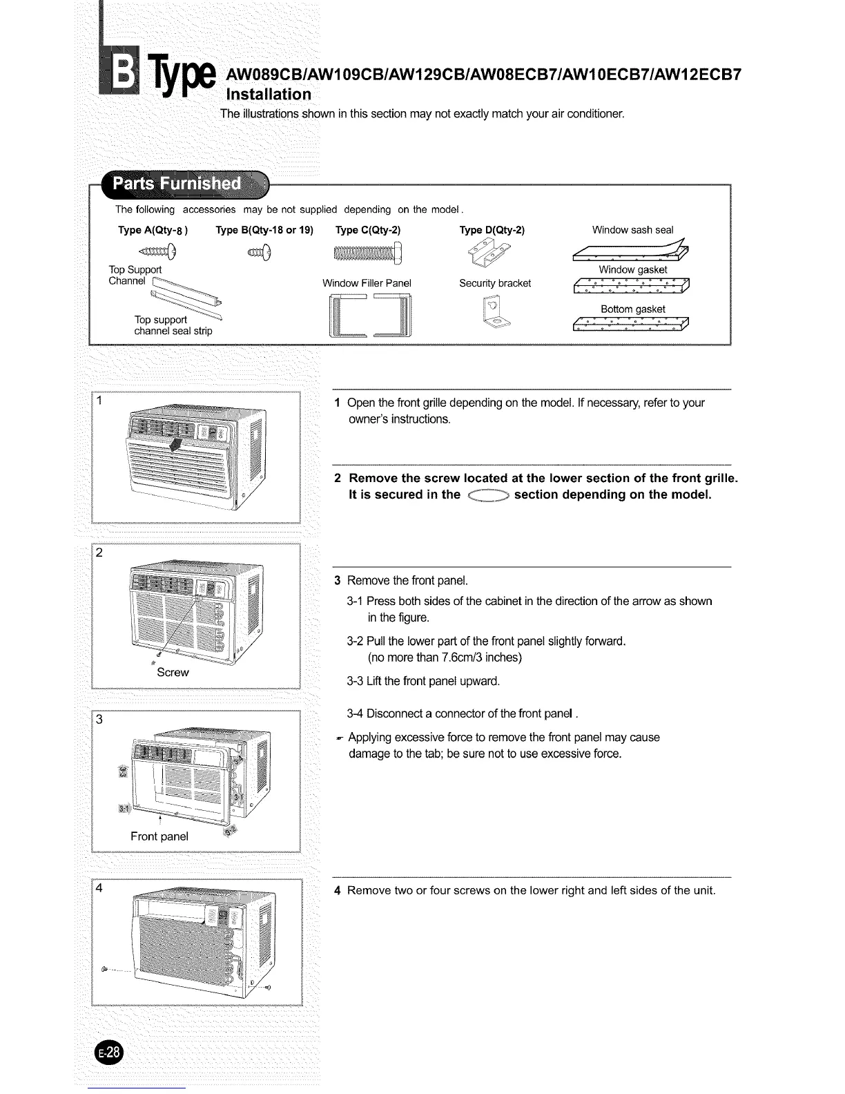 4 Remove two or four screws on the lower right and left sides of the unit.
