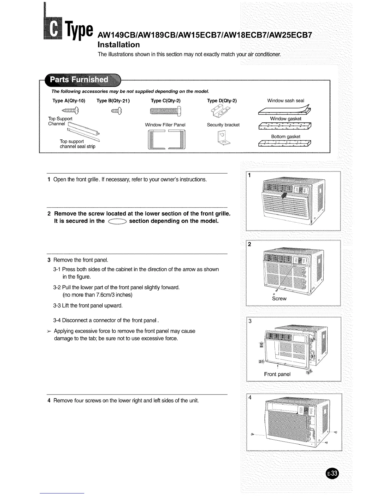 Samsung AW06ECB7 - C Type AW149 CB;AW189 CB;AW15 ECB7;AW18 ECB7;AW25 ECB7 Installation; C Type Parts Furnished