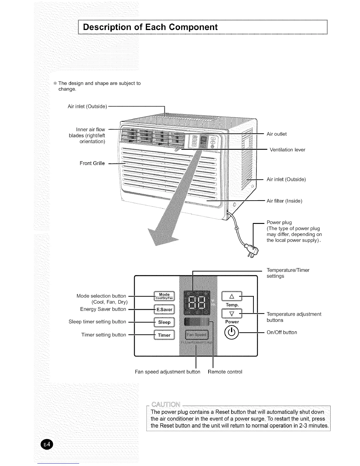 th e air conditioner in the event of a POWer surge, To restart the unit, PreSs