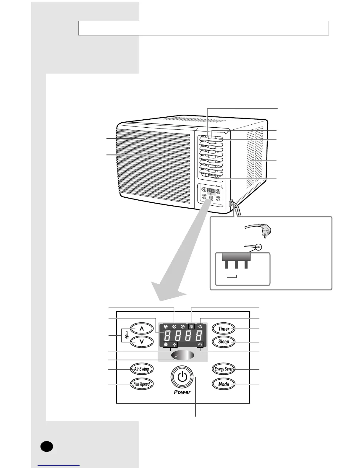 Air Conditioning Unit - Main Parts, Buttons and Display