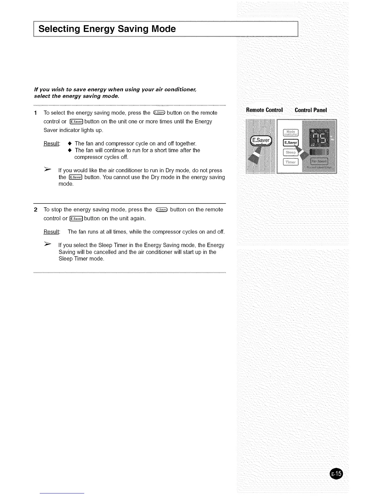 the _ button. You cannot use the Dry mode in the energy saving