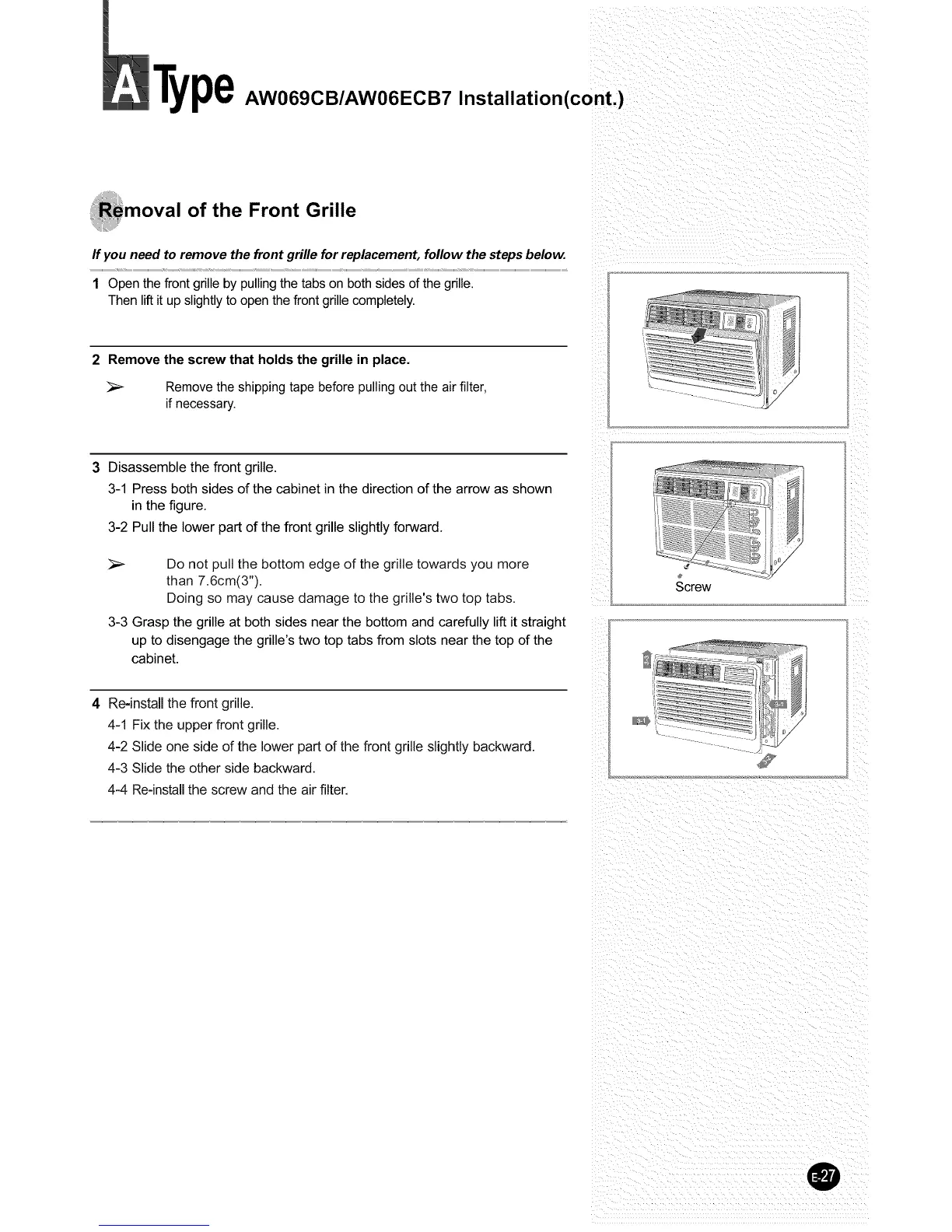 TypeAW069CB/AW06ECB7 Installation(cont.)