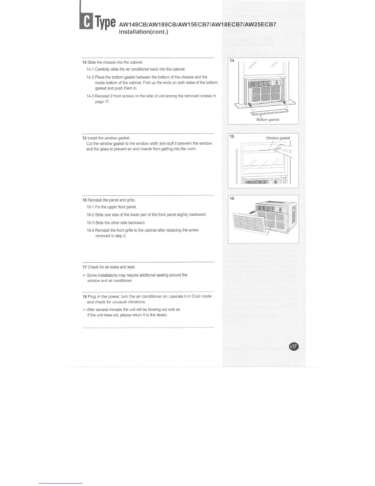 14-1 Carefully slide the air conditioner back