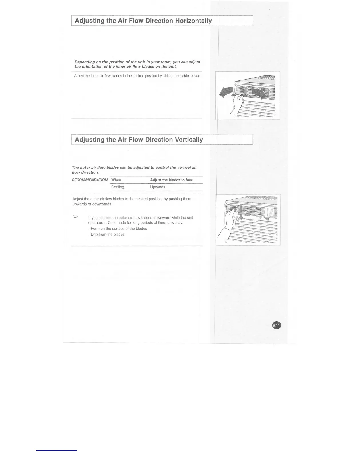 Samsung AW10ECB7 - Air Flow Direction Adjustment; Horizontal and Vertical Adjustment