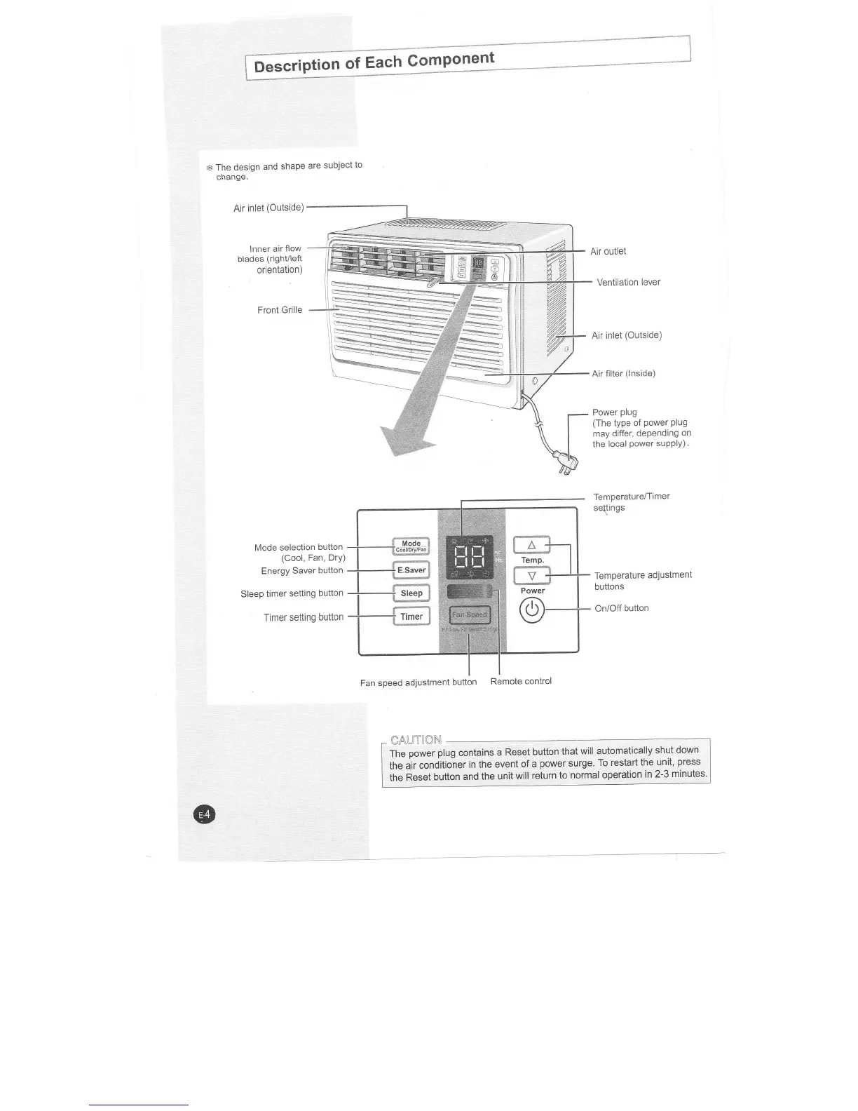 Samsung AW129CB - Description of Each Component; Main Unit Components; Remote Control Appearance