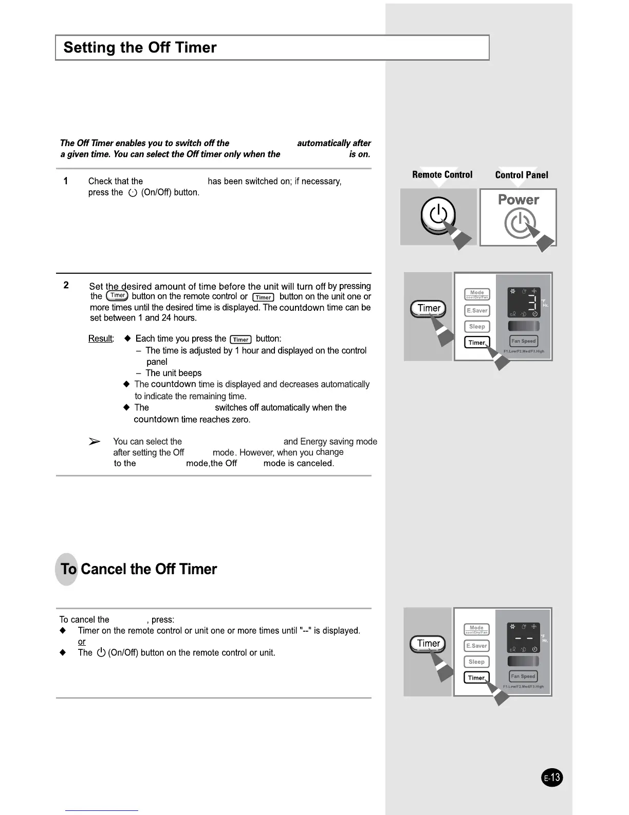 Samsung AW25ECB7 - Setting the Off Timer