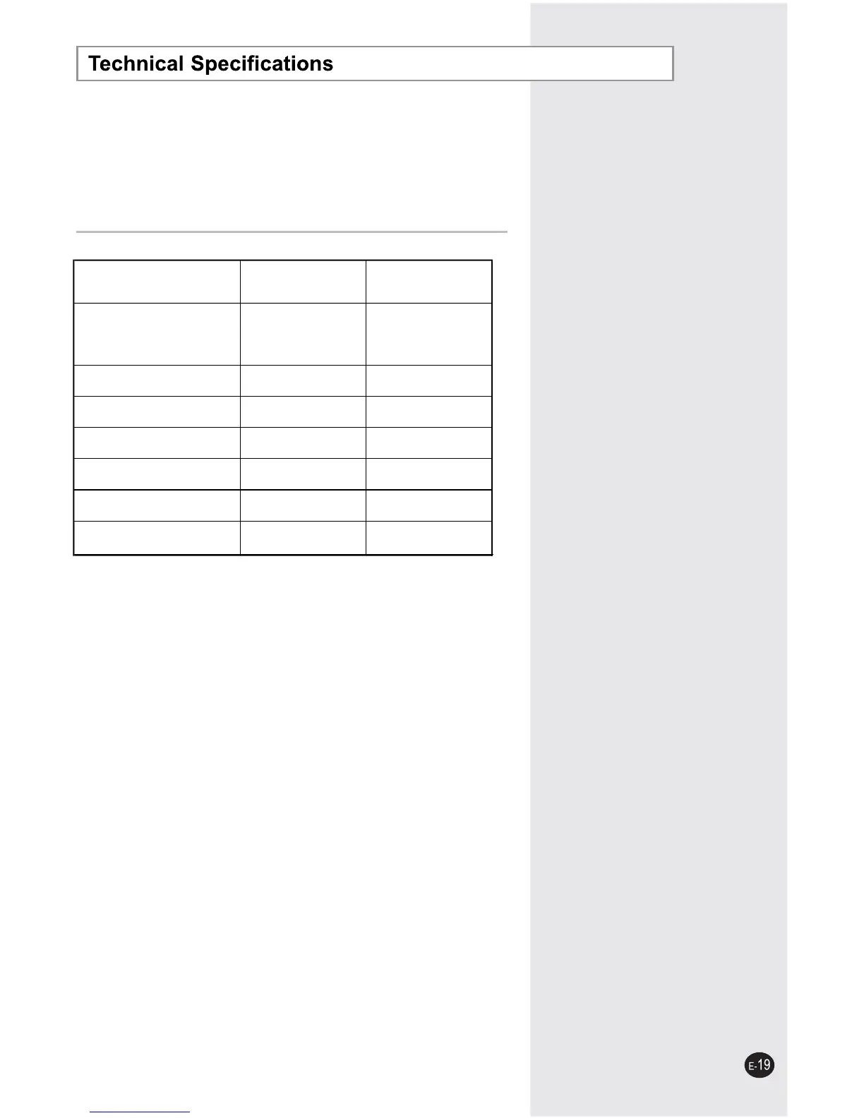 Samsung AW25ECB7 - Technical Specifications