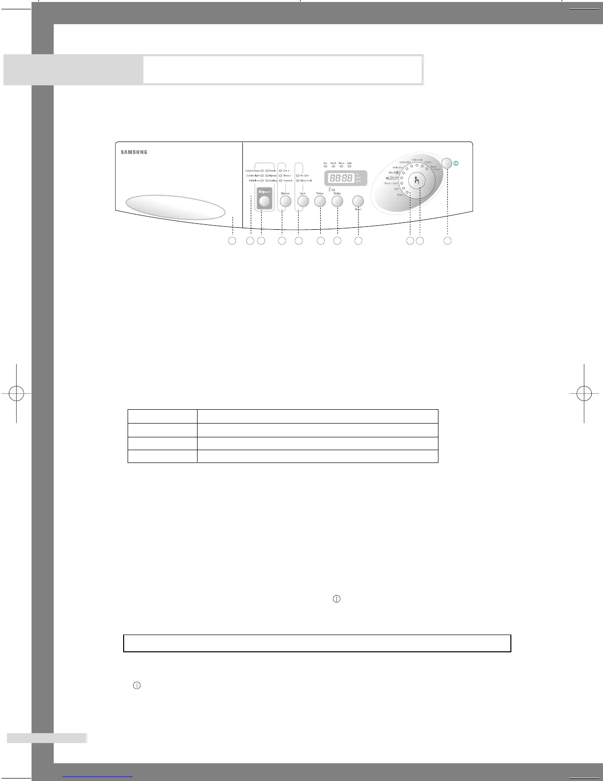 Press once to turn the washing machine on, press again to turn the washing machine off. If