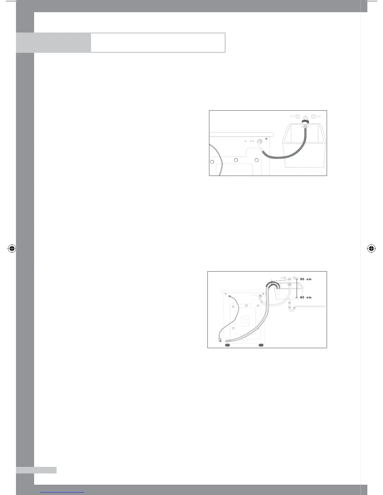 Odvodno crijevo se mora postaviti na visinu između 60 i 90 cm. Da bi grlić crijeva ostao savinut, koristite plastični