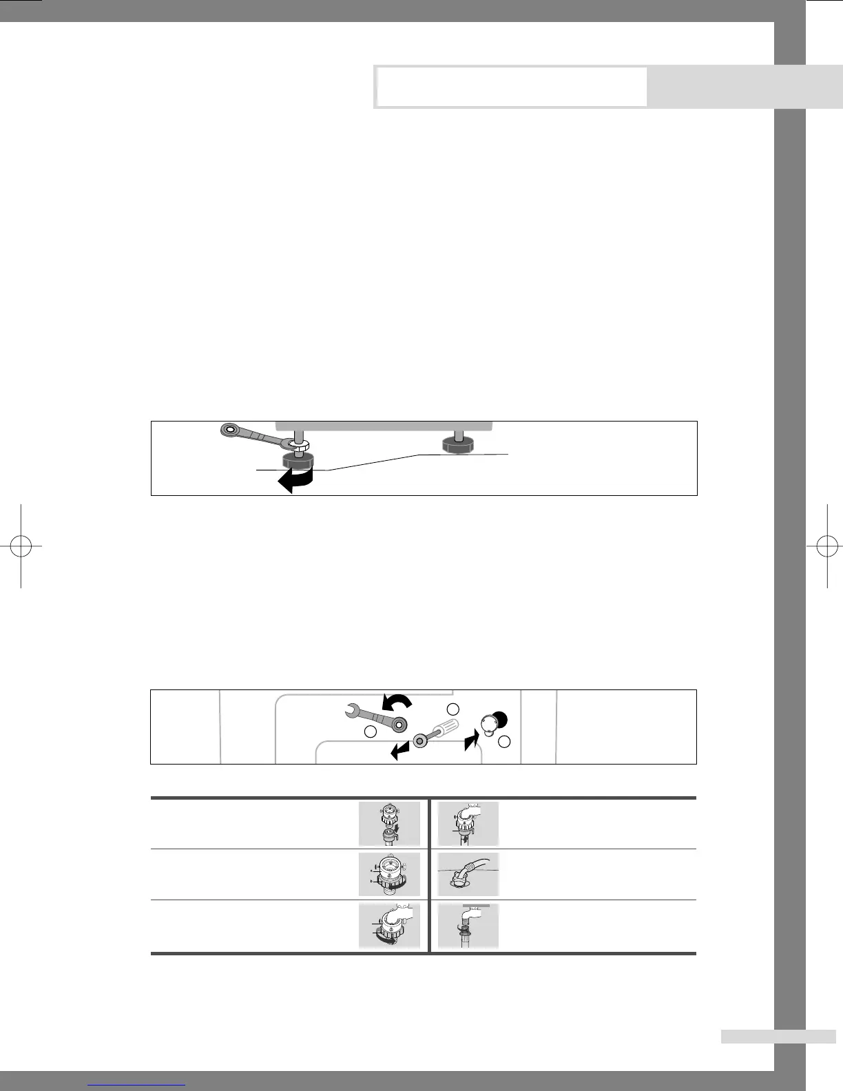 Falls die Stellfläche leicht uneben ist, können Sie die Füße des Geräts so einstellen, dass die Waschmaschine