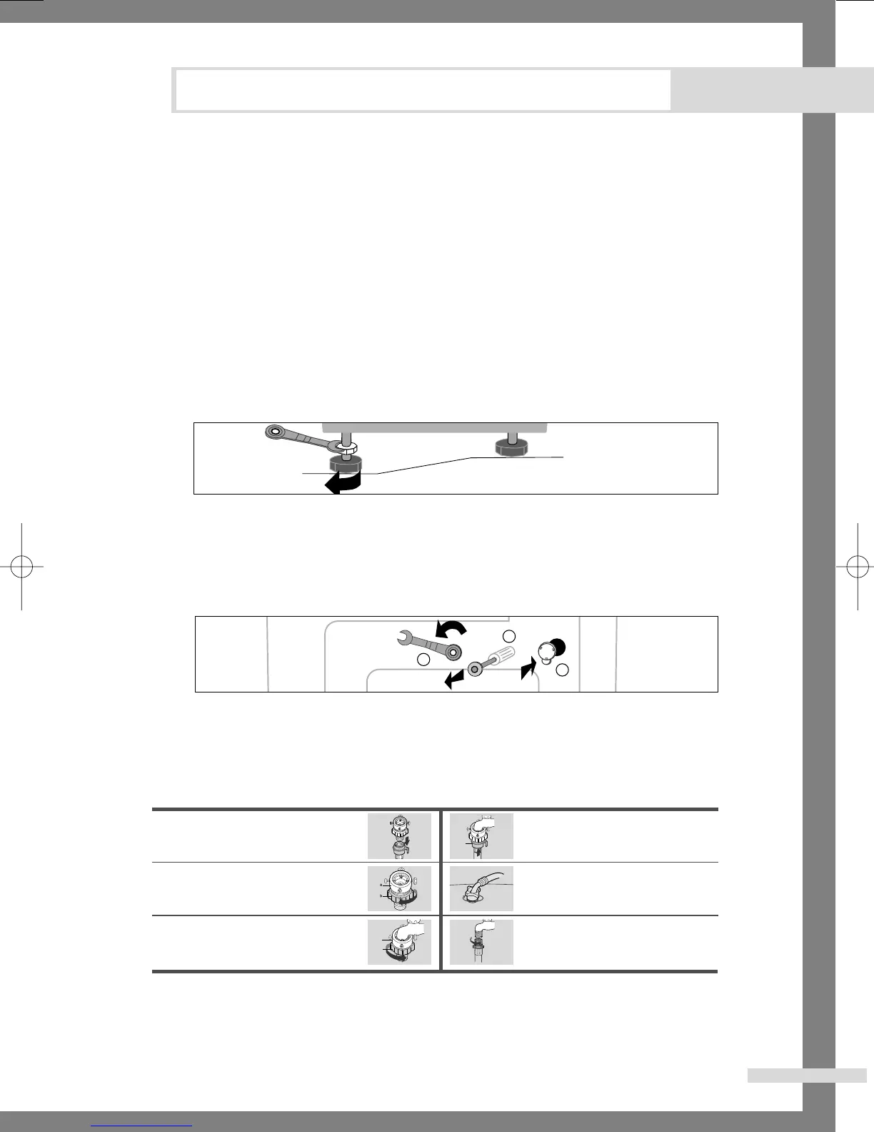 If the floor is uneven, adjust the feet (do not insert pieces of wood or any other objects under