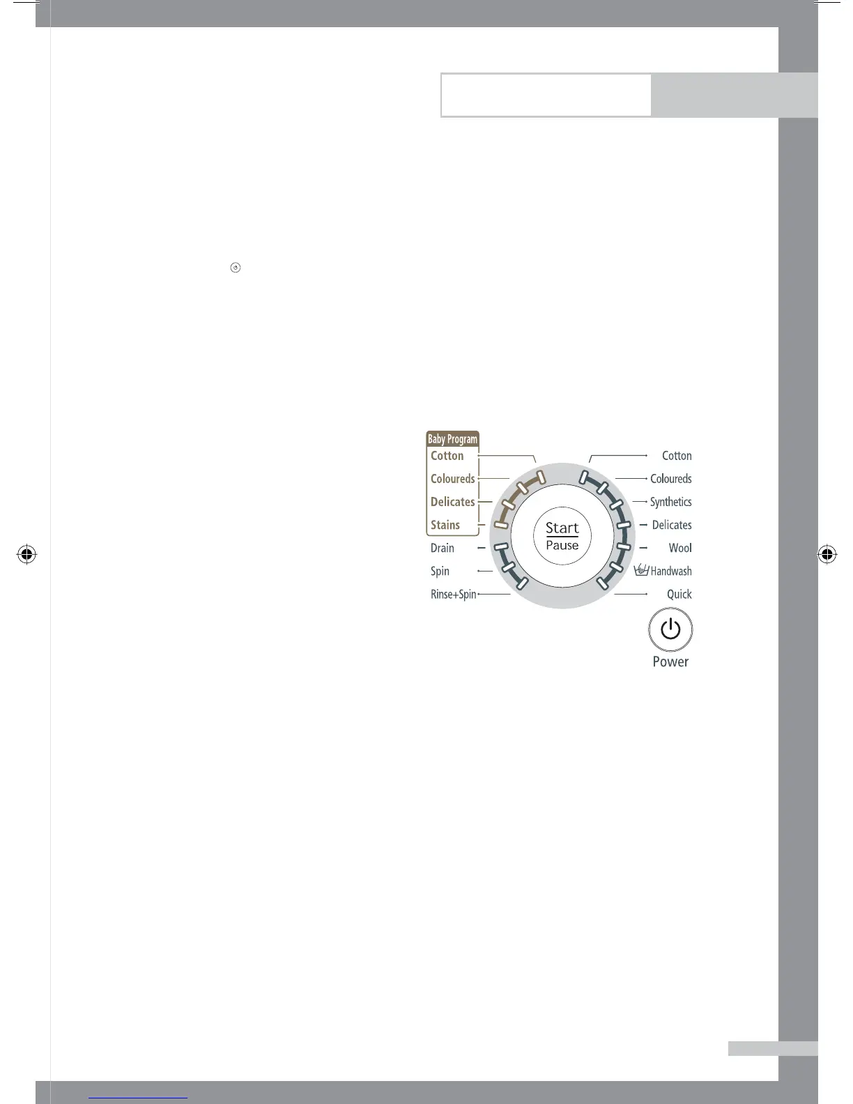 Notă: Prespălarea este posibilă numai pentru programele: Duvet (Cuvertură), Bedding (Aşternut), Towel