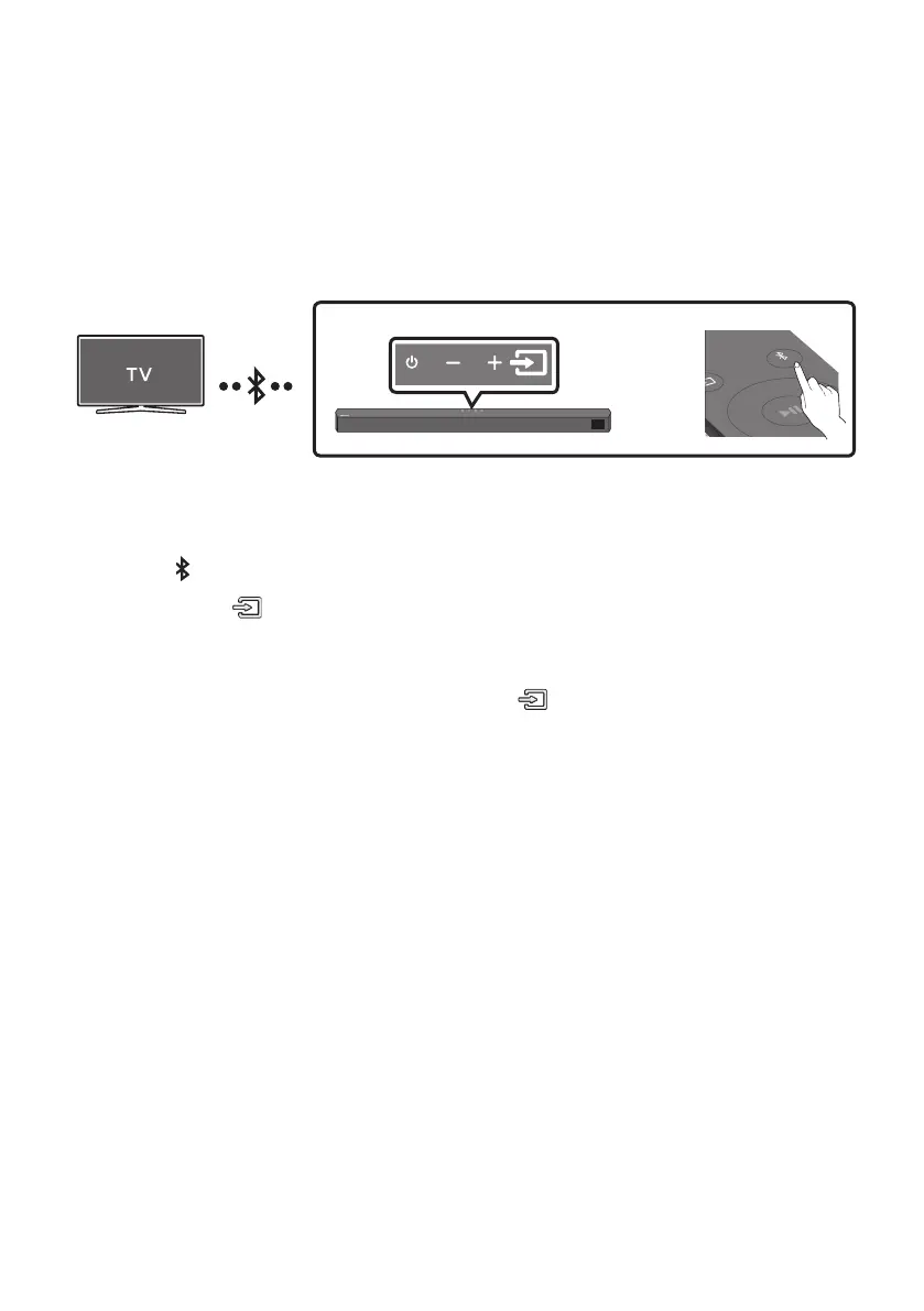 • When the TV is connected, [TV Name] → “BT” appears on the Soundbar’s front display.