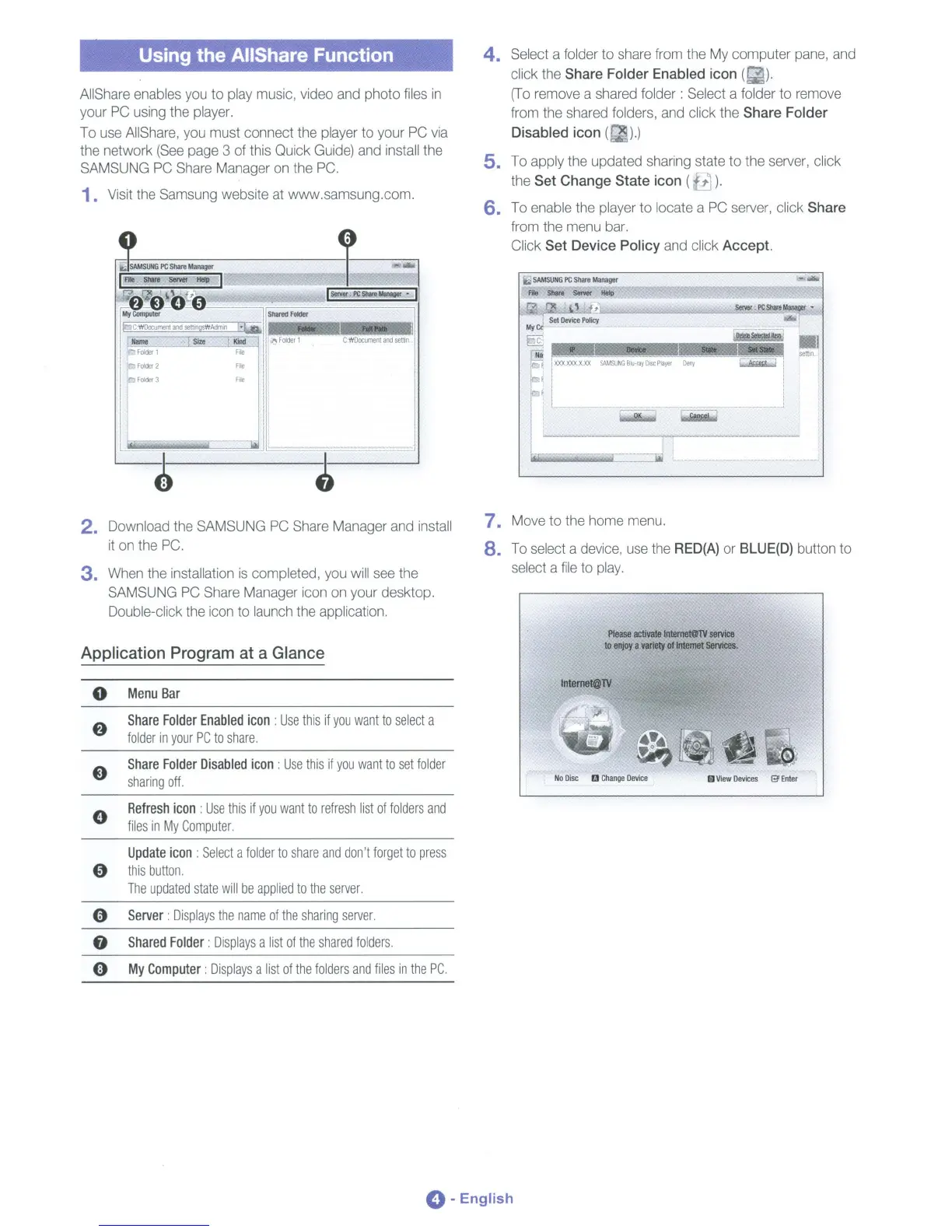 Samsung BD-C6500 - AllShare Function Setup; PC Share Manager Setup