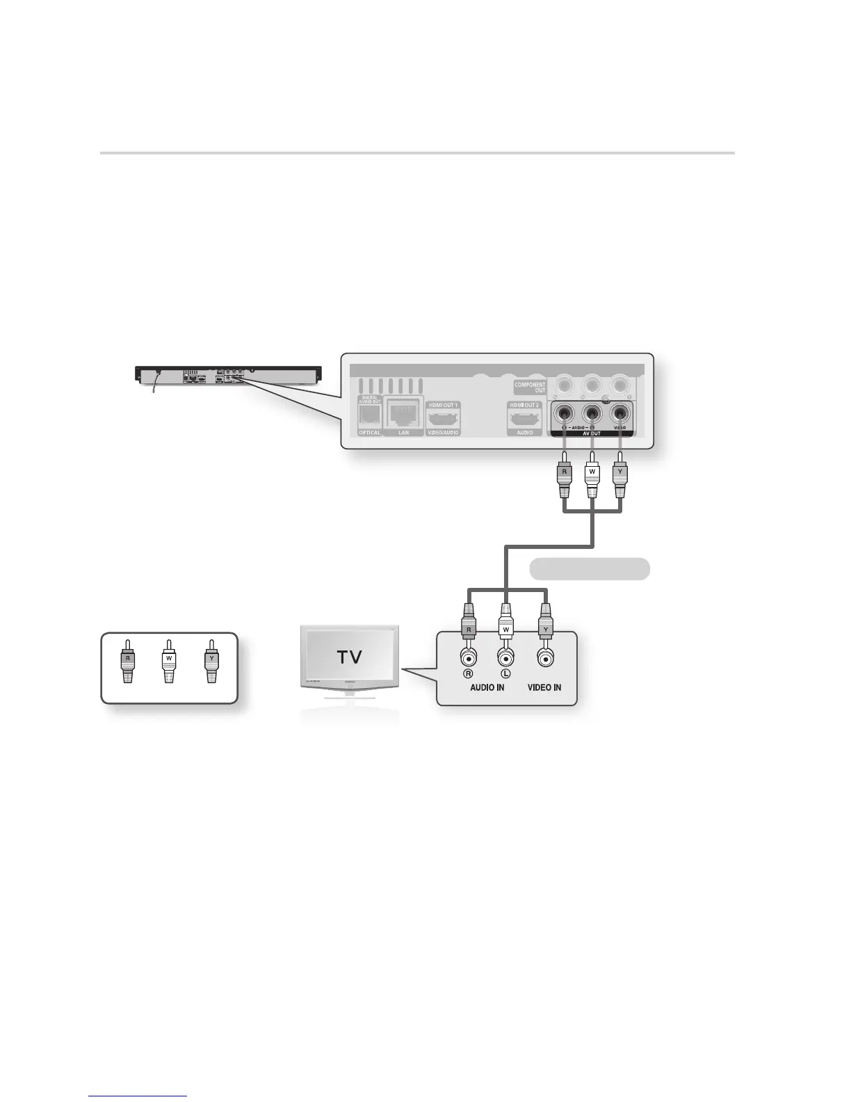 terminals on the rear of the player to the VIDEO IN (yellow) / AUDIO IN (red and white) terminals of