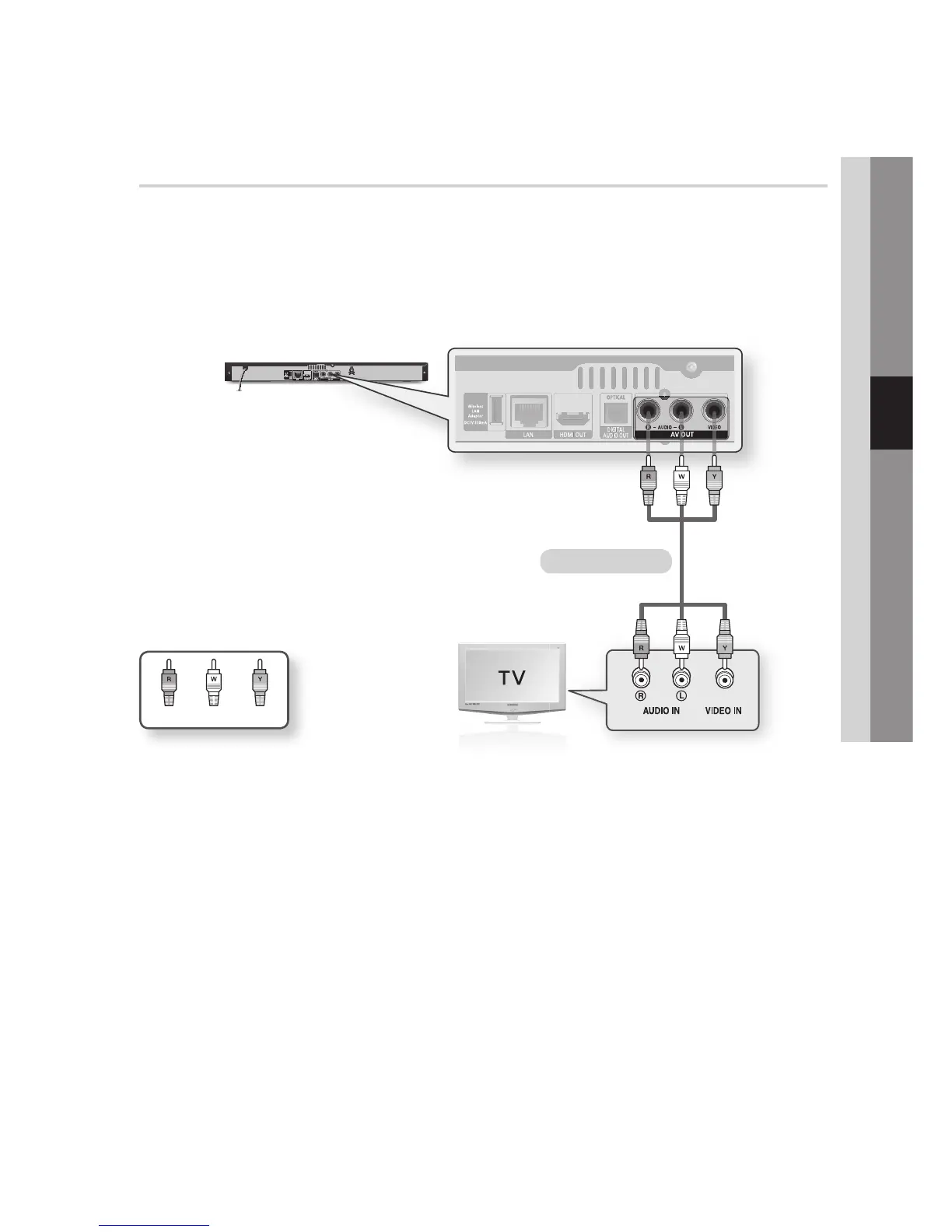 terminals on the rear of the player to the VIDEO IN (yellow) / AUDIO IN (red and white) terminals of