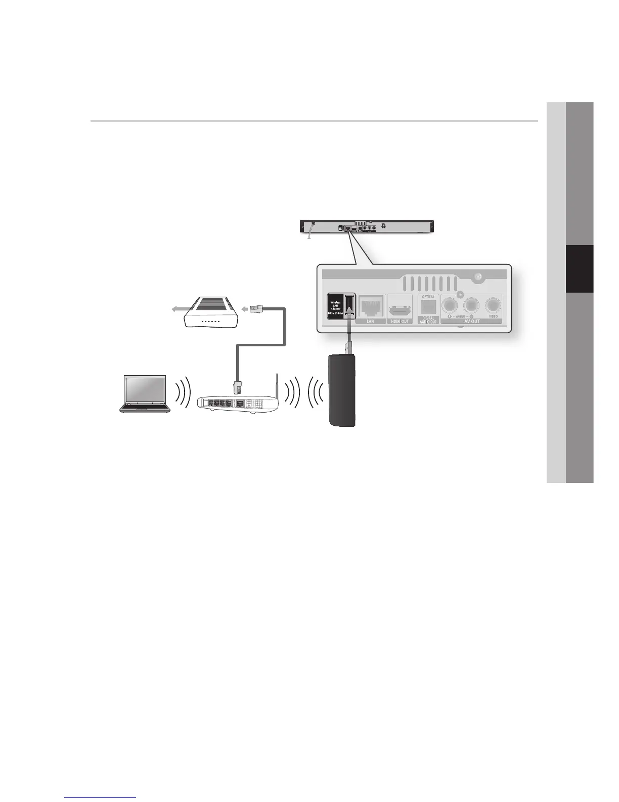To use the AllShare function, you must connect your PC to your network as shown in the figure. The connection can be