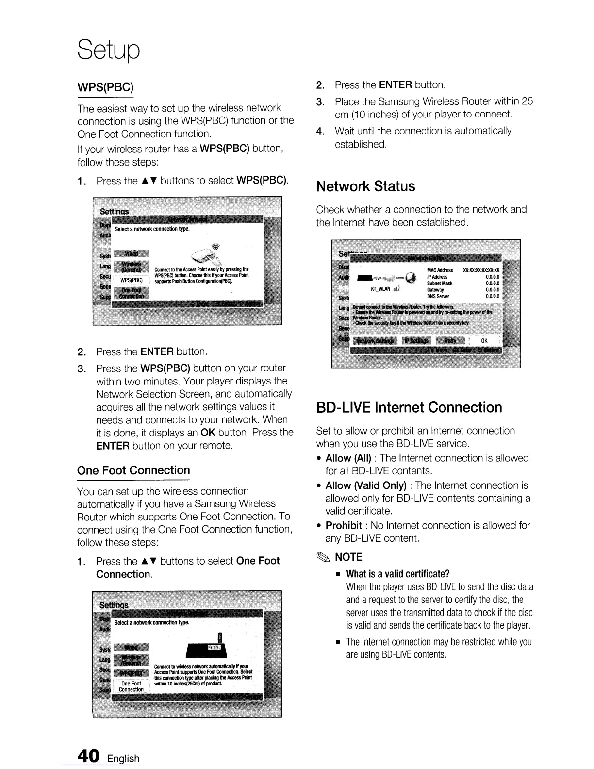 Samsung BD-D5500 - Network Status; SO-LIVE Internet Connection