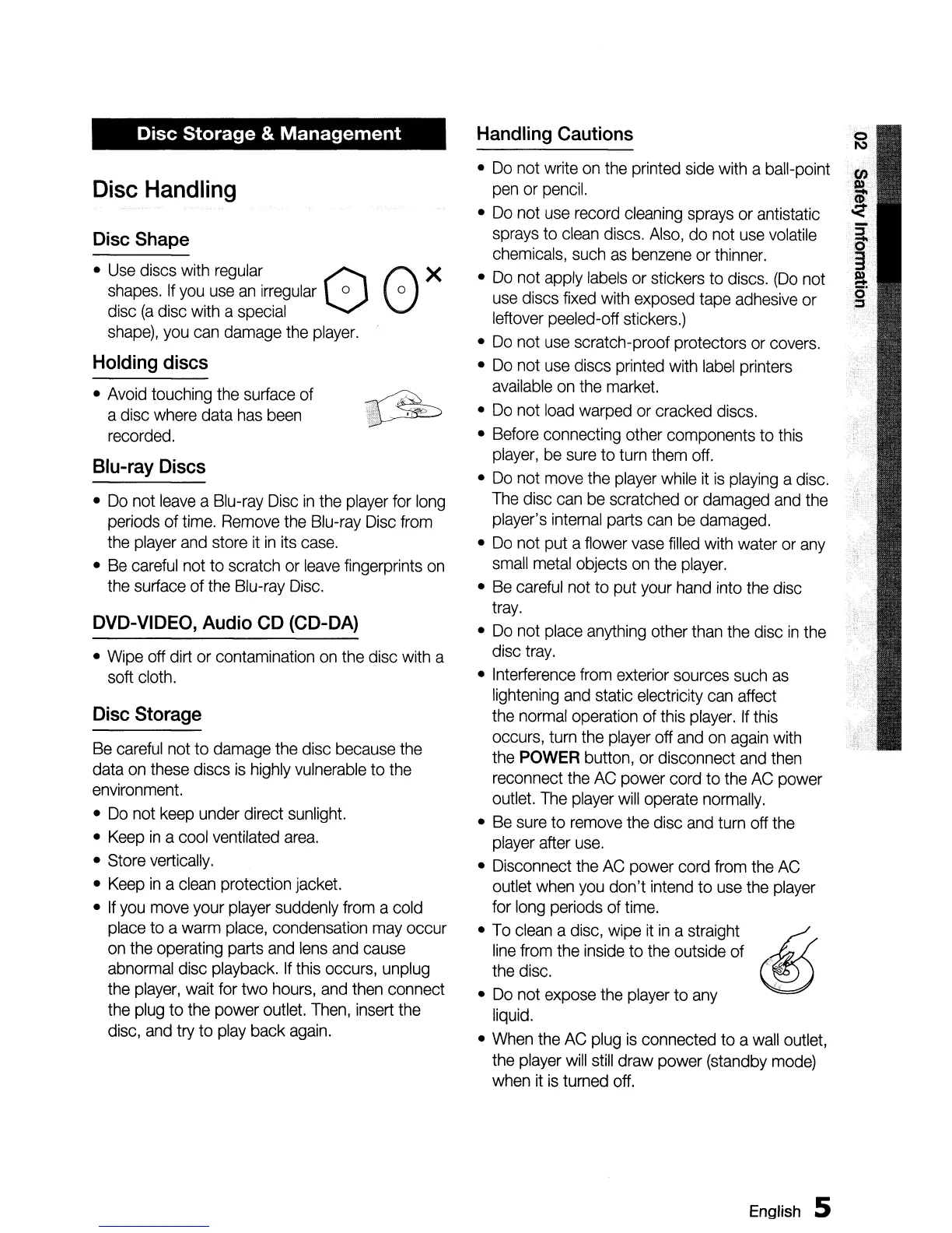 Samsung BD-D5500 - Disc Handling and Storage; Disc Handling Guidelines; General Handling Cautions