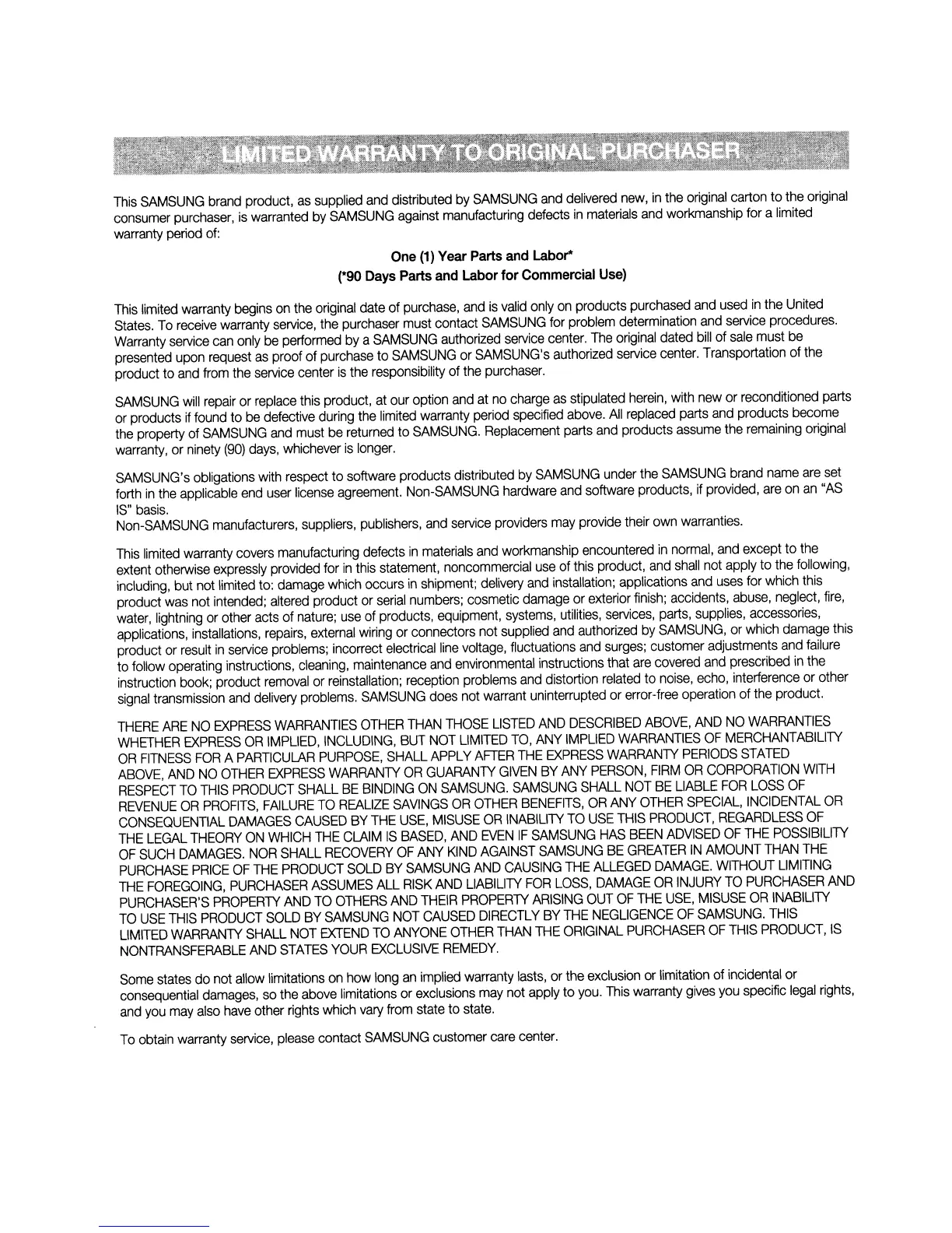 Samsung BD-D5500 - Limited Warranty; Warranty Terms and Conditions