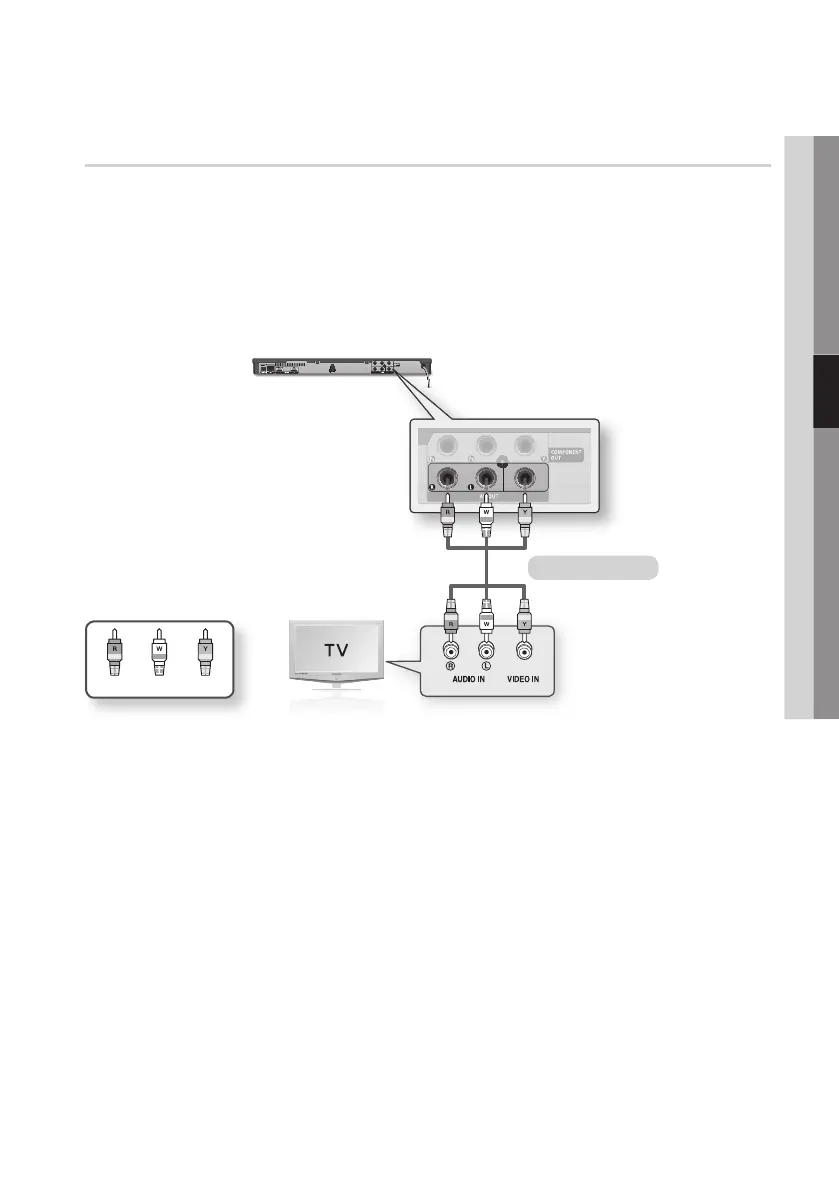terminals on the rear of the player to the VIDEO IN (yellow) / AUDIO IN (red and white) terminals of