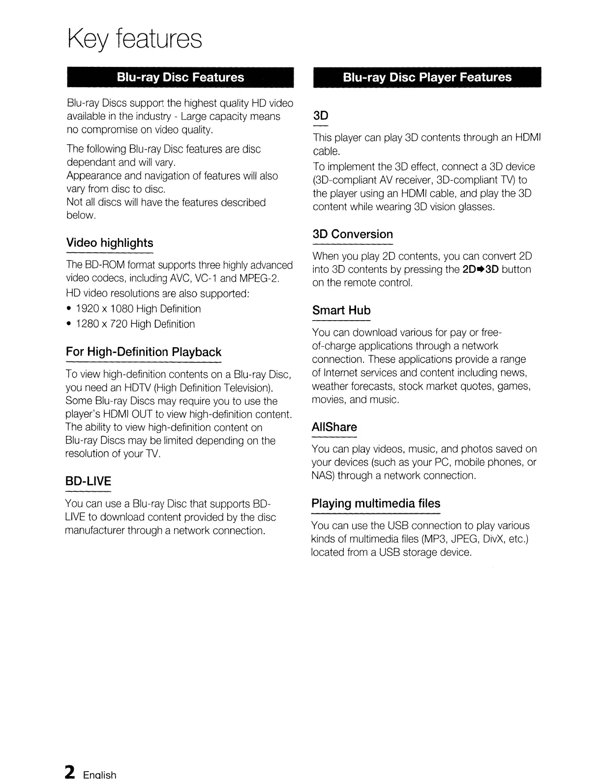 Samsung BD-D7500 - Blu-Ray Disc Player Features