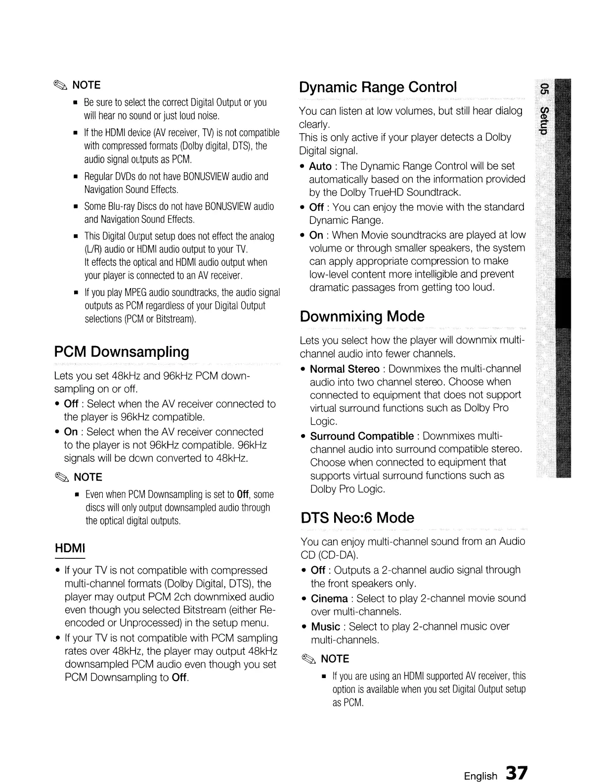 • Off: Outputs a 2-channel audio