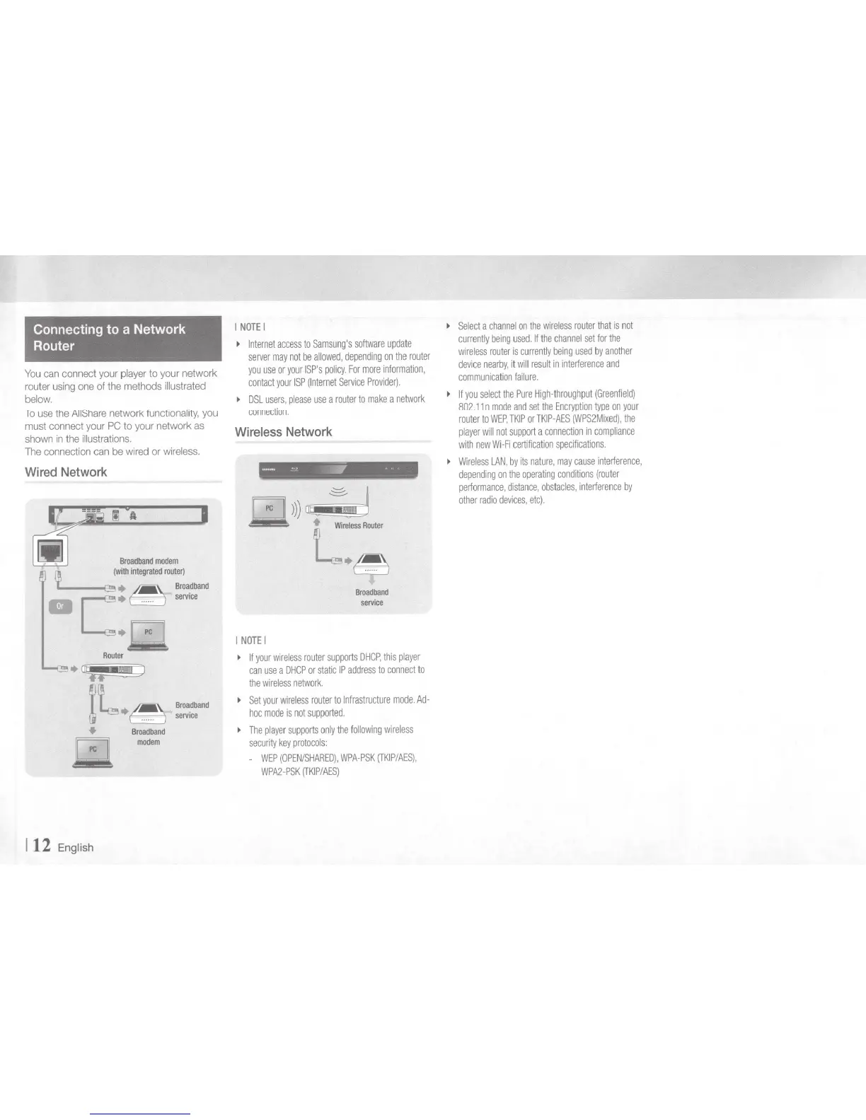 Samsung BD-E5700 - Connections: Network Setup Guide; Connecting to a Network Router; Wired Network Connection Setup; Wireless Network Connection Setup