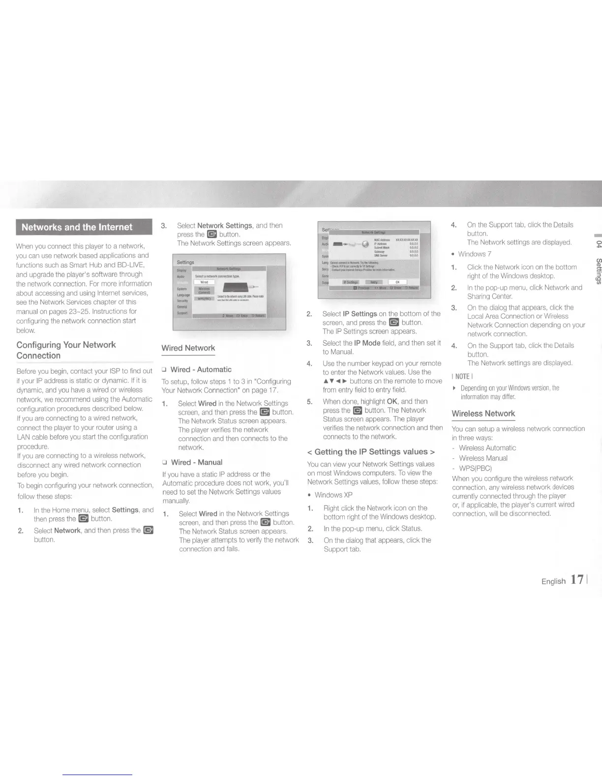 Samsung BD-E5700 - Settings: Detailed Network Configuration; Configuring Your Network Connection Steps; Wired Network Setup Procedures; Wireless Network Setup Procedures