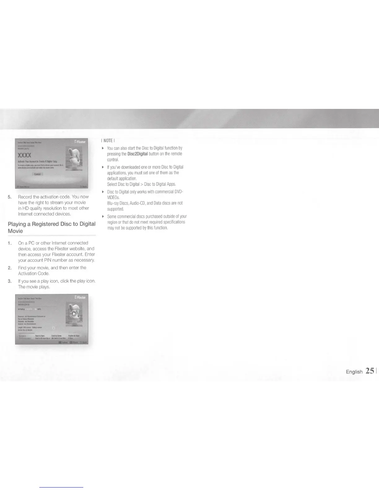 Samsung BD-E5700 - Network Services: Disc to Digital Movie Playback; Playing Registered Digital Movies