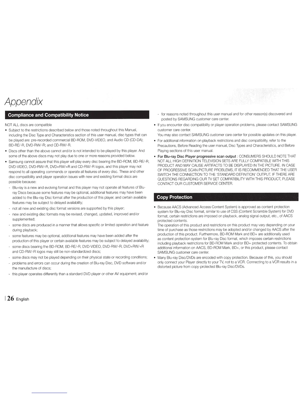 Samsung BD-E5700 - Appendix: Compliance, Protection, and Licenses; Disc Compliance and Compatibility Notices; Copy Protection Systems Explained