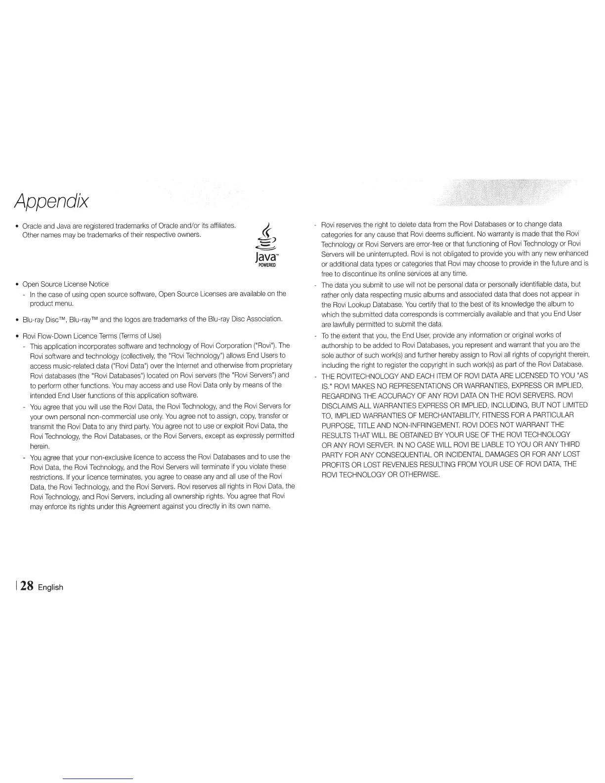 Samsung BD-E5700 - Appendix: Open Source and Rovi License Terms; Open Source License Notice Information; Rovi Technology Terms of Use