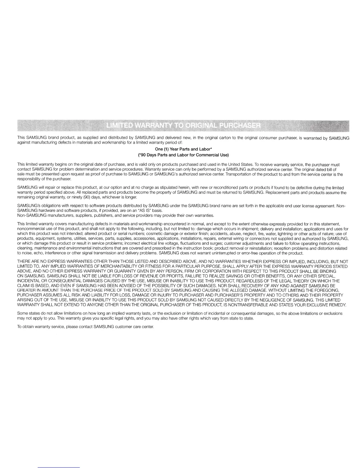 noise, echo, interference or other signal transmission and delivery problems. SAMSUNG does not warrant uninterrupted