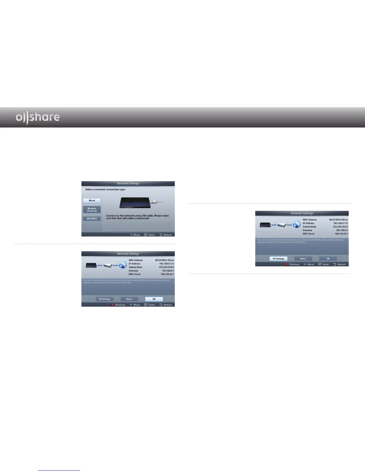Select <Wired> in the Network Settings screen, and then press the