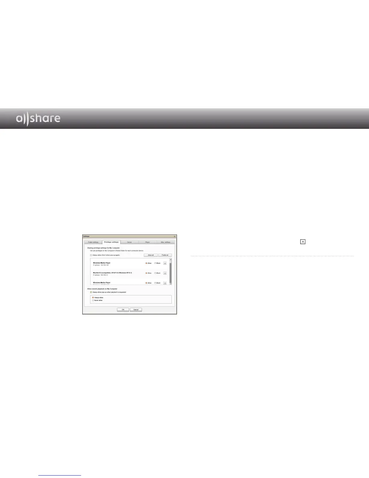 ● Never allow : Devices cannot playback on My Computer.