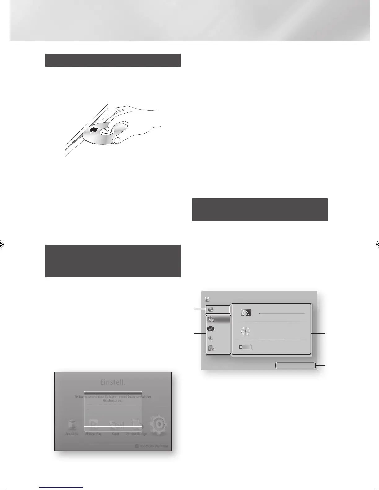 Samsung BD-E8300 - Anschließen eines USB-Geräts oder eines Mobiltelefons an den USB-Anschluss; Einlegen einer Disk in das Disk Fach; Media Play; Zugriff auf den Allshare Play Bildschirm
