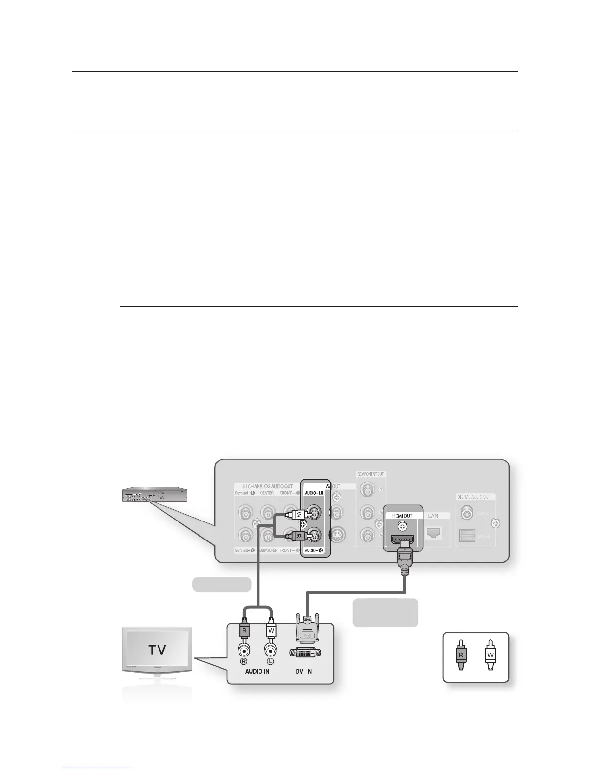 Using the audio cables, connect the AUDIO (red and white) OUT terminals on the rear of the Blu-ray Disc