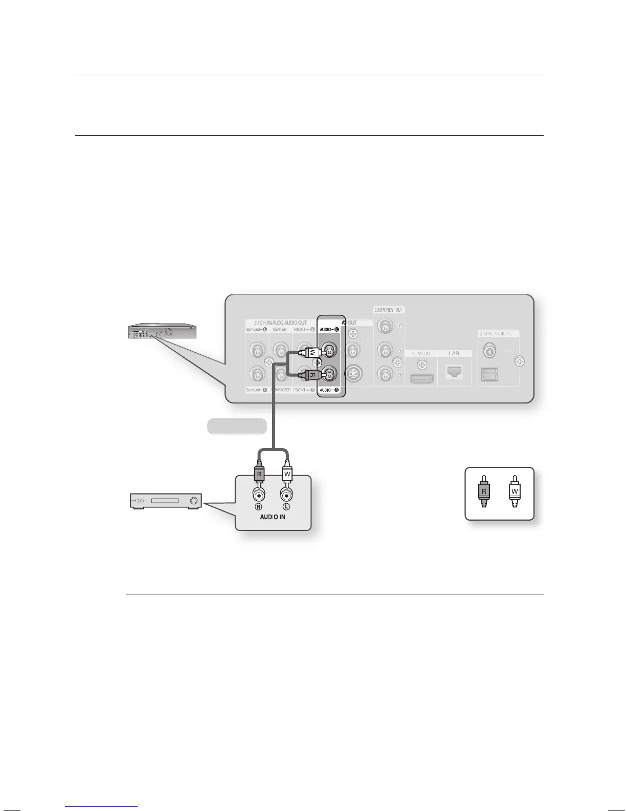 Using the audio cables, connect the AUDIO (red and white) OUT terminals on the rear of the Blu-ray Disc