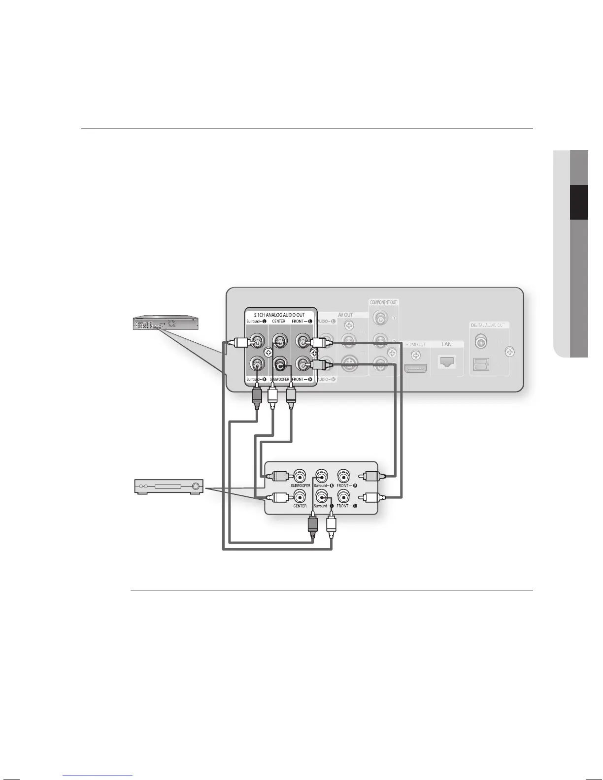 Surround L, Surround R) terminals on the rear of the Blu-ray Disc Player to the 5.1 Channel ANALOG AUDIO