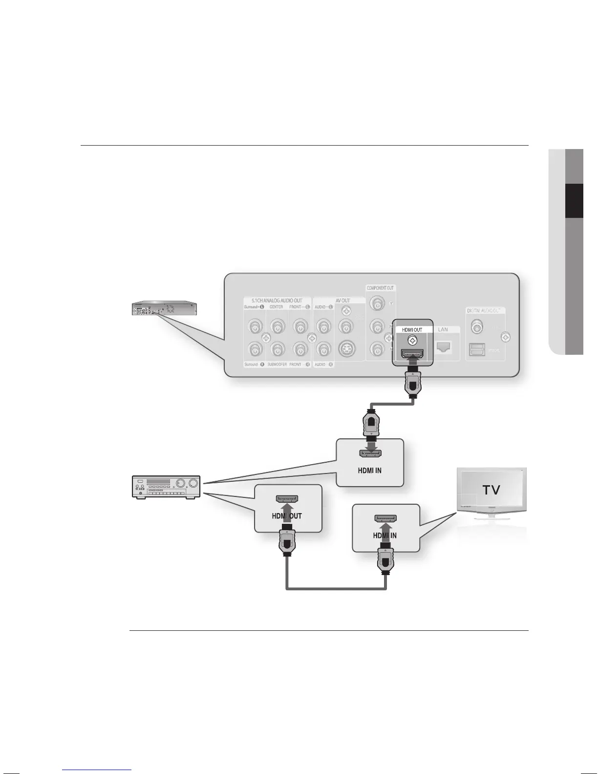 Using the HDMI-HDMI cable, connect the HDMI OUT terminal of the Amplifi er to the HDMI IN terminal of your