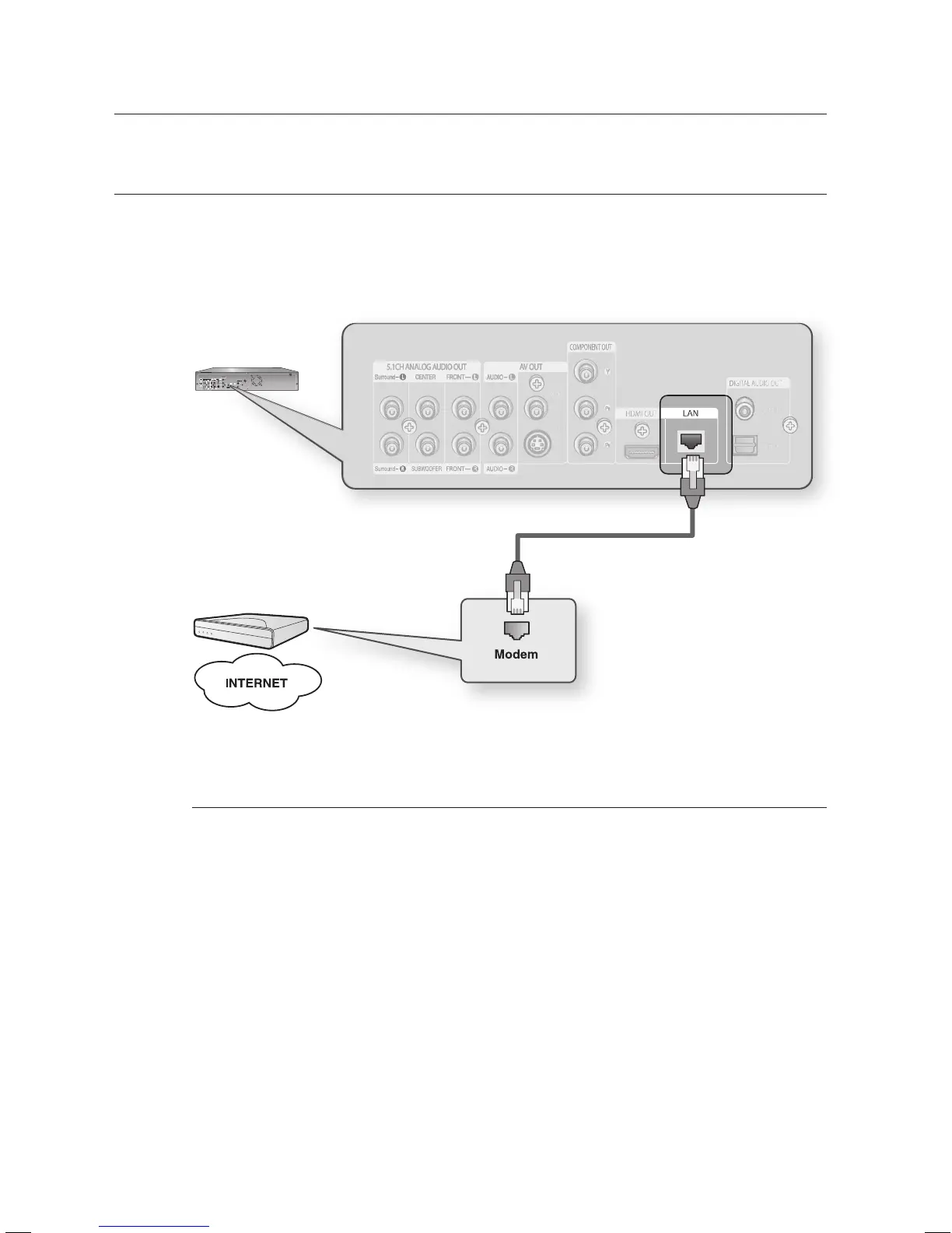 Using the Direct LAN Cable (UTP cable), connect the LAN terminal on the rear of the Blu-ray Disc Player to the