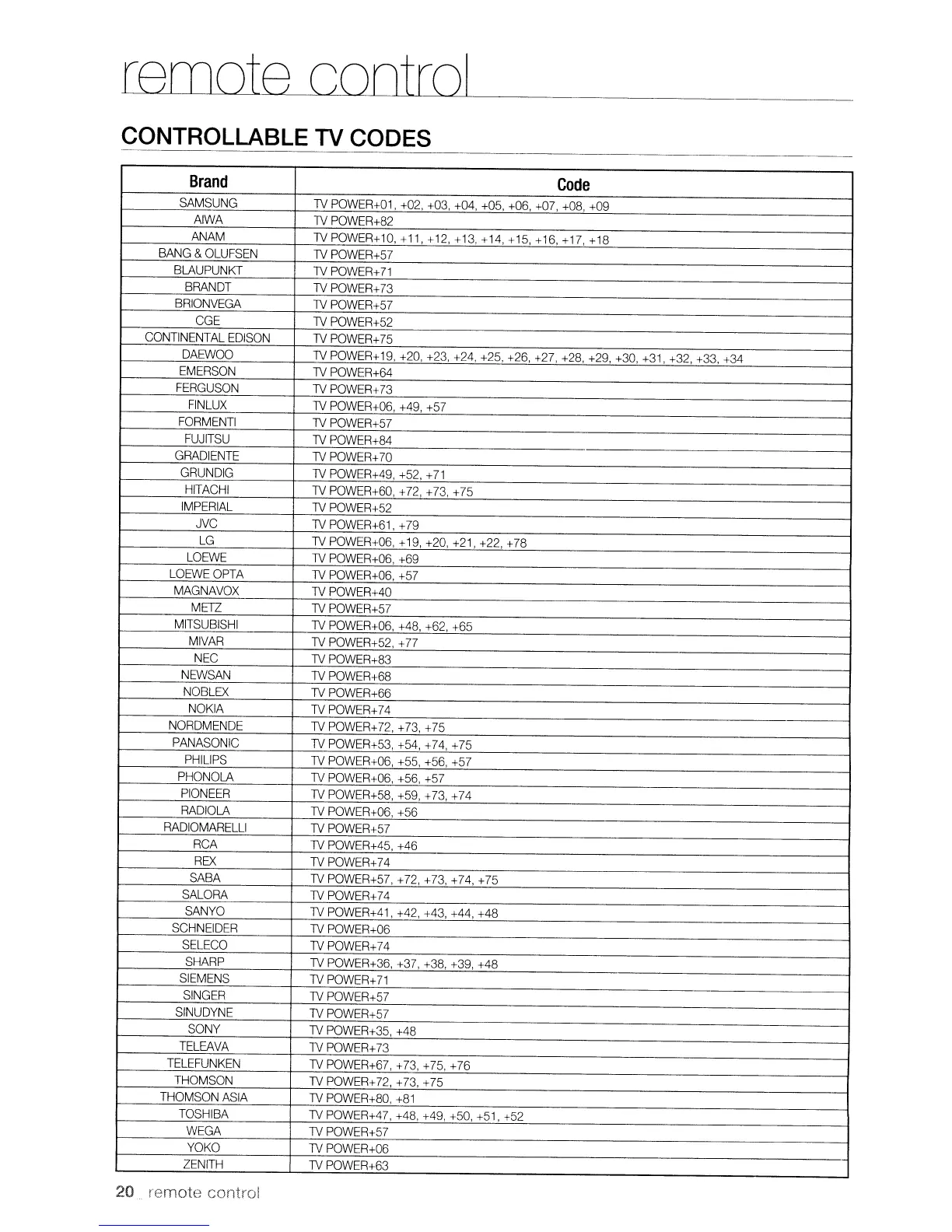 CONTROLLABLE TV CODES