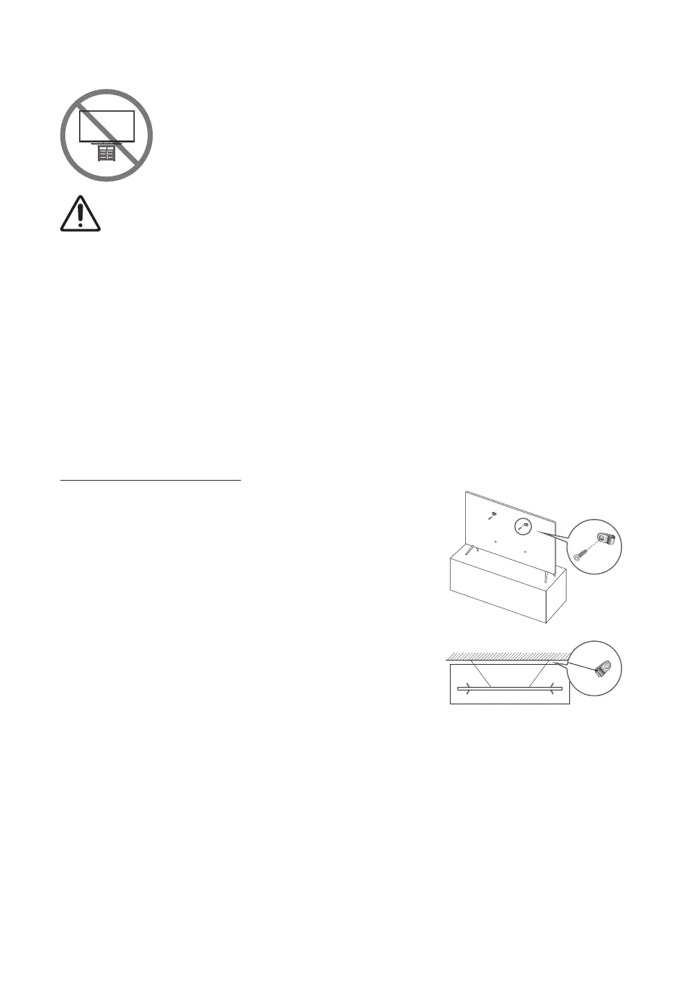your children do not hang on or destabilize the TV. This action may cause the TV to tip over,
