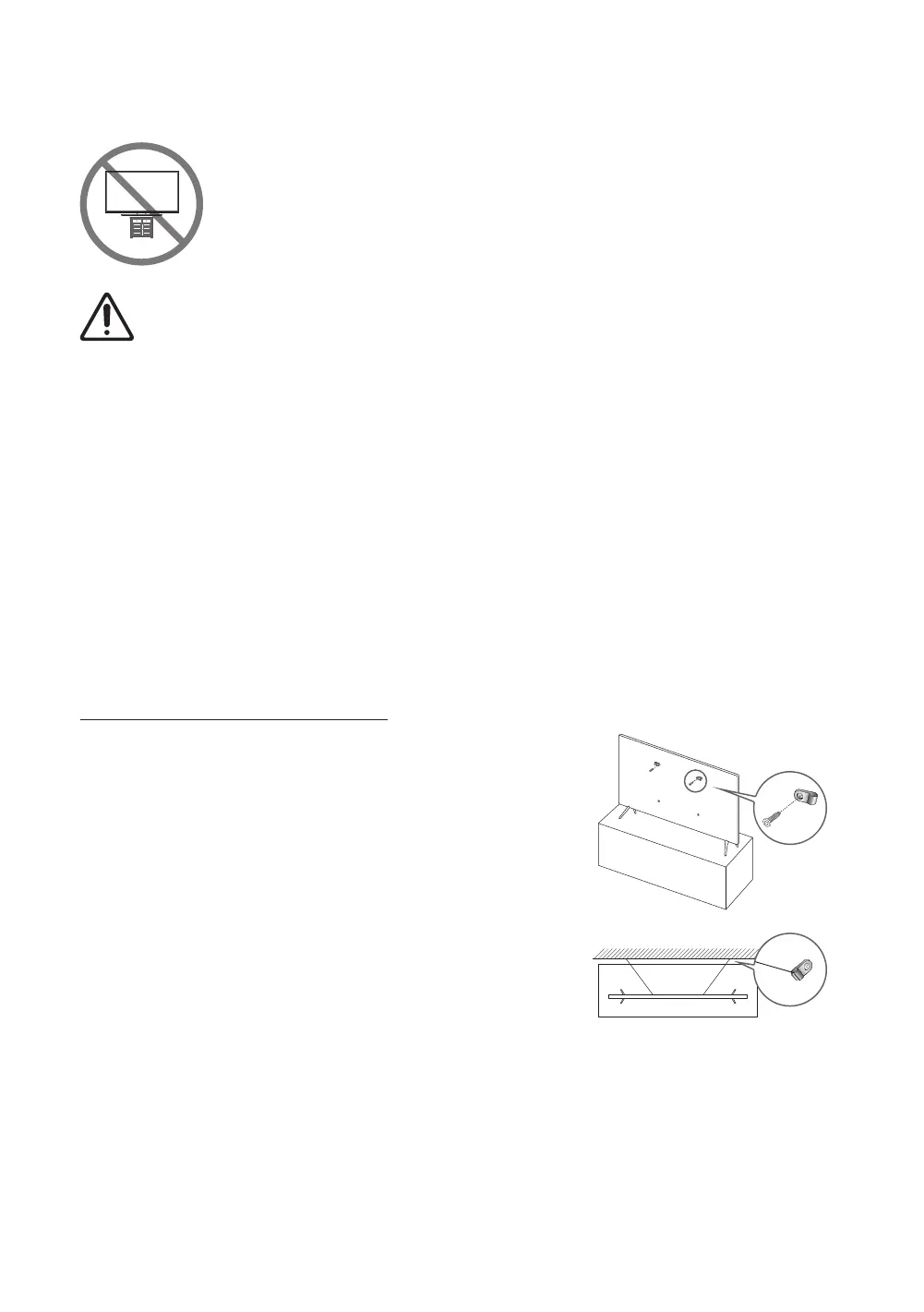• Si le téléviseur est placé sur des meubles hauts (par exemple des armoires ou étagères à livres), veiller